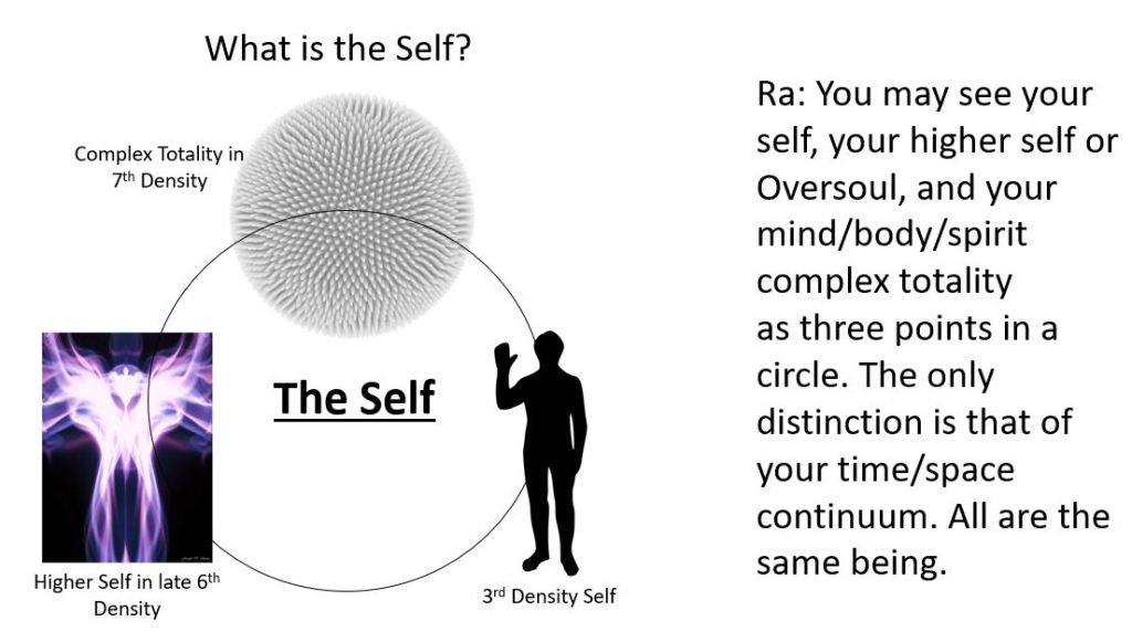 9.2 Don (the Questioner) learns that he, Carla (Instrument) and Jim (Scribe), have worked together several times in past lives involving healing, using earth energy, and general aid to civilizations that call for help. This latter point certainly speaks to the purpose of Wanderers entering into 3rd density planetary situations. However, Don also learns that there is information that Ra knows but chooses not to share because it violates free will. The seventh-density mind-body-spirit-complex-totality (this is higher than the Higher Self, which is a mid-sixth density phenomenon), carefully guards this information because it is paramount that the third density experience of a person remain free to choose their path and learn from catalysts.