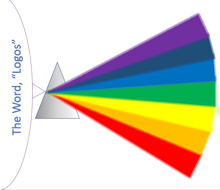 The Infinite Creator pours itself into the concept of “finity” (depicted here as a prism) and thus many-ness is expressed.