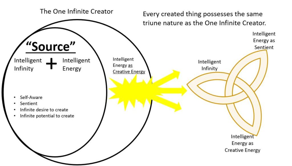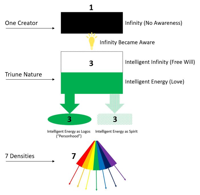 So, according to time as we would perceive it, the “first” known thing in the Creation, Ra says, is infinity. The infinity is able to be—or “becomes”–aware. This aware infinity is called by Ra intelligent infinity, and also the Creator.