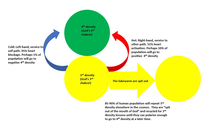 16.12 Questioner: Then as we enter the fourth density there will be a split, shall we say, and part of the individuals who go into the fourth density will go to planets or places where there is service to others and the other part will go into places where there is service to self.