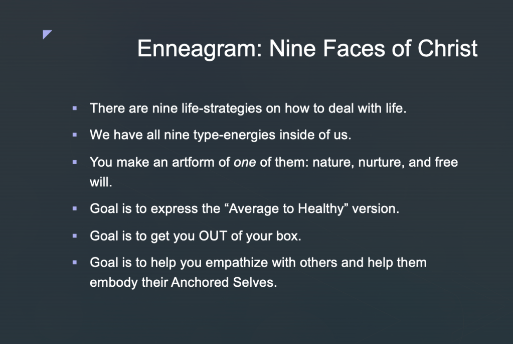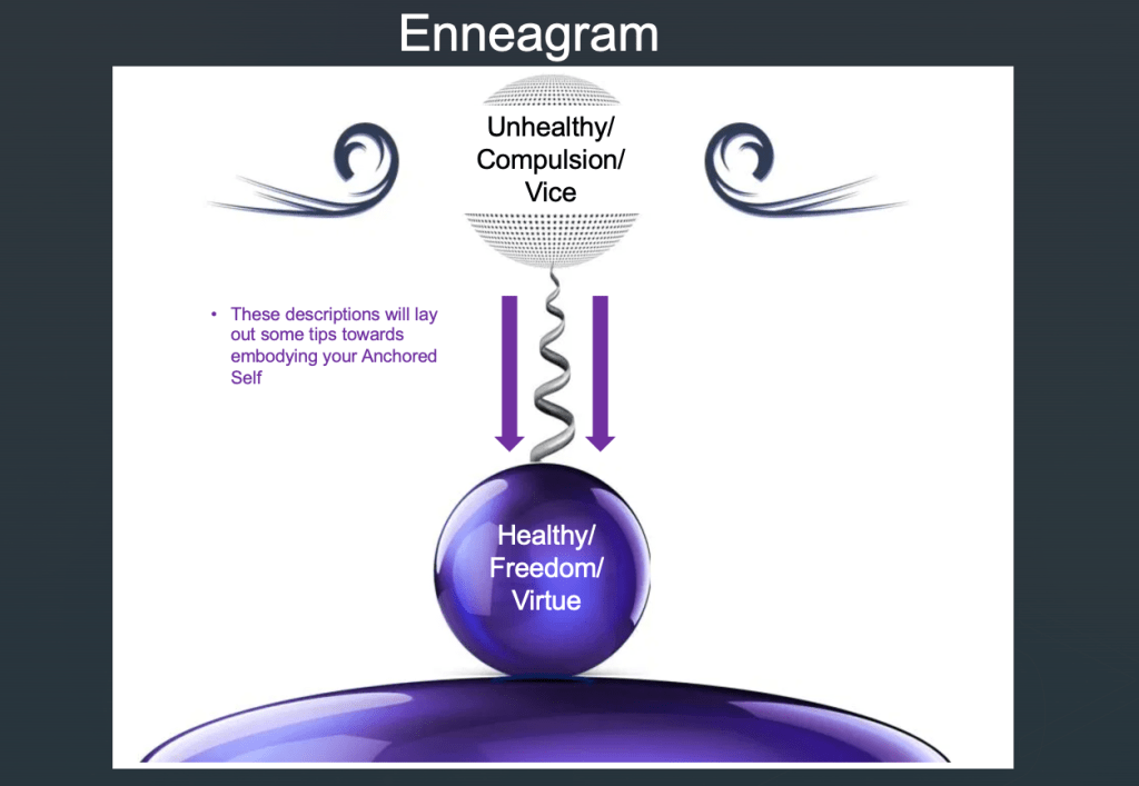The following is a series of graphics taken from my presentation on the Enneagram. When I present the Enneagram, I always spend the first half of the presentation on exploring the differences between the True Self and the False Self, which I term, the Anchored Self and the Floating Self.