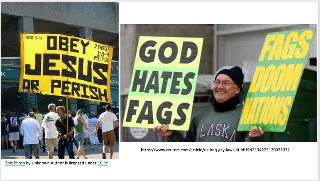 Say I am a fundamentalist Christian pastor. I believe that those who don’t believe the way I do will go to hell. I am xenophobic. I hate Muslims and liberals. But I serve my church every Sunday with my whole heart. I visit the sick in my church. I have helped couples stay together after struggles. I have set up scholarships for our young-adult members to go to college. I preach the truth that only those who accept the Lord Jesus as the savior will go to heaven. I see myself as a gallant figure. But I reject the idea that those outside of my community are loved by God until they repent. I feel that it is my Christian duty to defend Jesus Christ against Satan’s onslaughts which are most especially evidenced by our liberal society’s acceptance of gays. I tell parents in my congregation that if they really loved their gay children, they would shun them until the children repent and come back to Jesus–so that they can be saved and thus, join their parents in heaven.