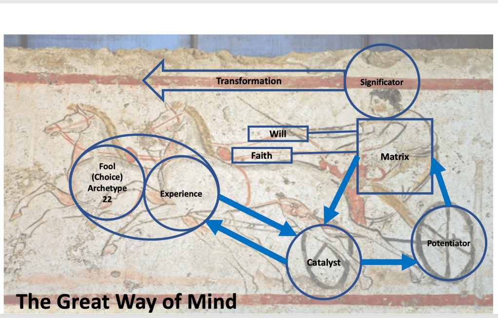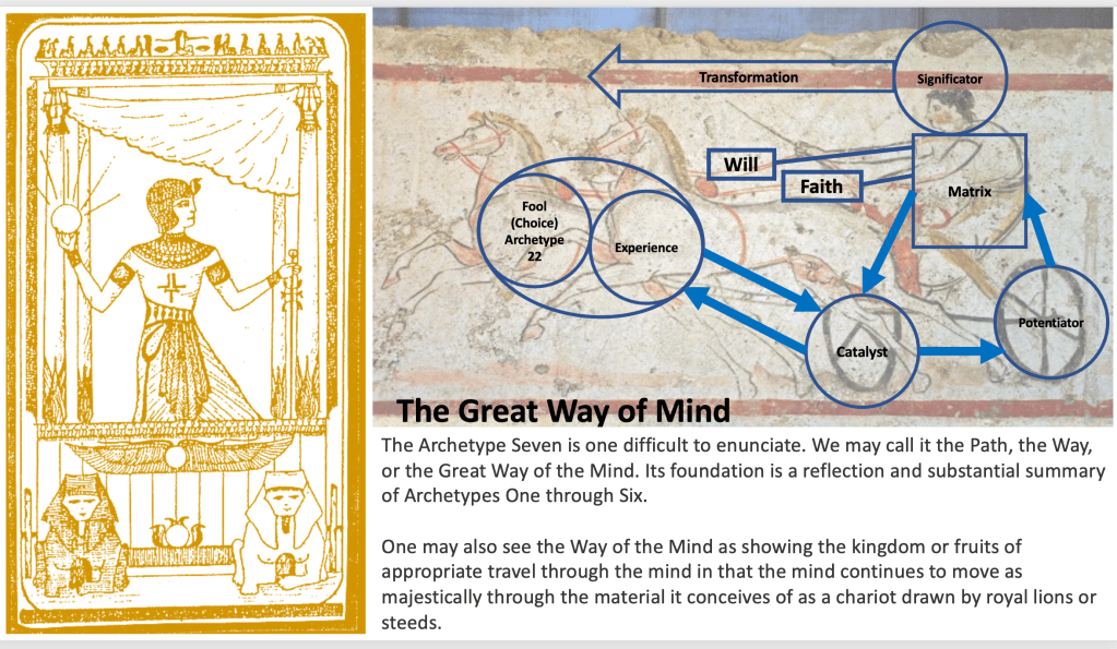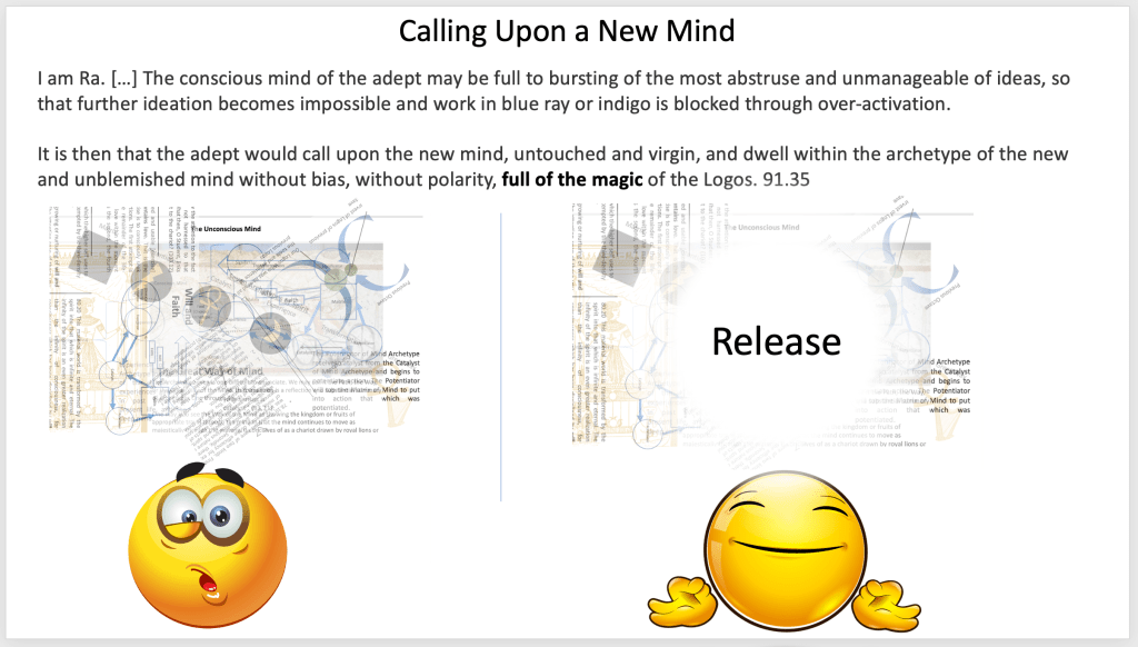Doug Scott, LCSW continues his presentation on the Archetypes of the Mind to the Building 4th community. We discussed Ra’s description of how the adept puts on a new mind–a new matrix–when we feel our conscious minds become “full to bursting of the most abstruse and unmanageable of ideas, so that further ideation becomes impossible and work in blue ray or indigo is blocked through over-activation” 91.35.