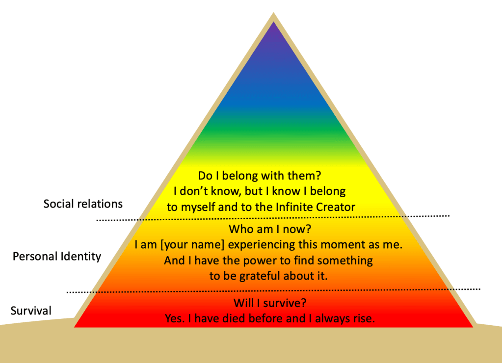 | Orange Ray | Personal Identity | Who am I now? | I am an imposter. I am my pain body. I am my mistakes. I am wrong. I am stupid. I am weak. I am lonely. I am… SHAME |