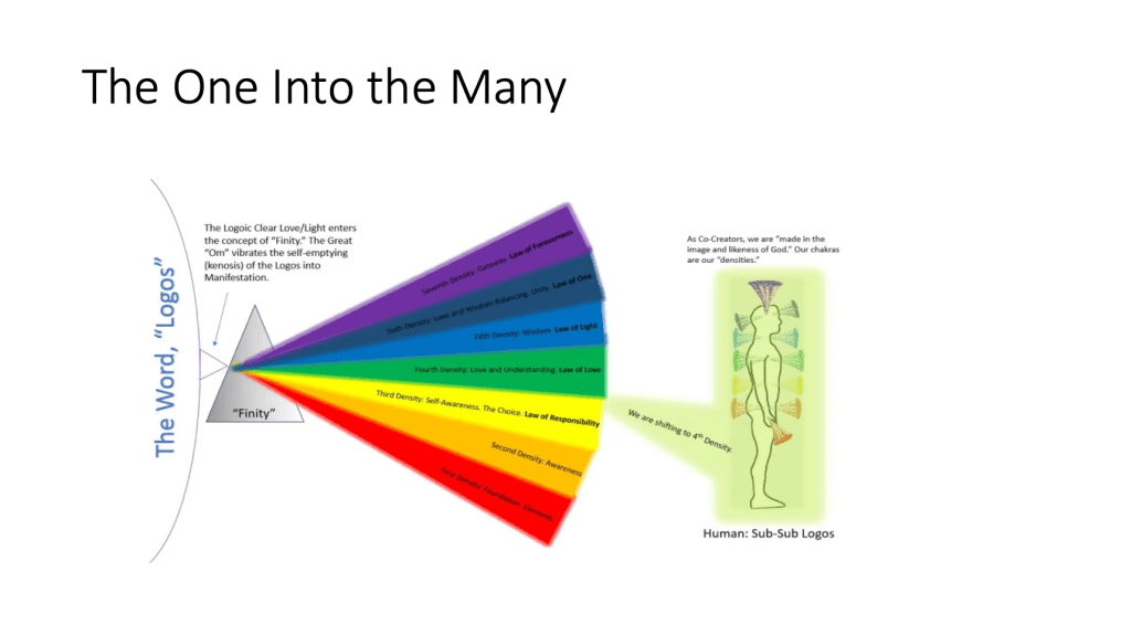 Just as you have seven primary chakras, the Universal Body has seven primary cosmic chakras called “densities.” Each density in the cosmic octave is a unique and interconnected expression of light/love much like each note in an octave of music is unique yet a part of the whole. The densities are bandwidths of consciousness that configure light/love into metaphysical environments which correspond to stages of consciousness evolution.