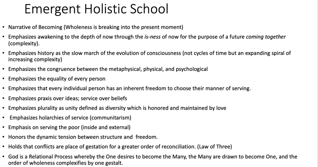 •Emphasizes awakening to the depth of now through the is-ness of now for the purpose of a future coming together (complexity).