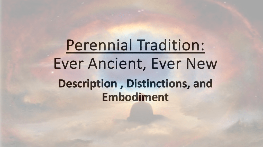 The following was my presentation with the Institute of Global Transformation where I present a (non-expert) overview of the Perennial Tradition. I try to describe the Perennial Tradition, present some distinctions in different views of Perennial Tradition, and how to embody any given teachings so that they are received, digested, and incarnated into a lived praxis.