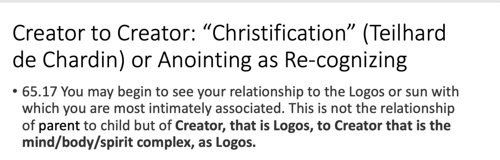 •Joshua Christ Event: was 1) development in Creator’s self knowledge, 2) development in logoic archetypal mind, 3) Yahweh/Emmanuel self knowledge development, 4) installs the forgiveness principle; 5) creates an efficient pathway to gnosis of self as creator through relationship (i.e. unitive consciousness) 5) it was an inter order of magnitude complex