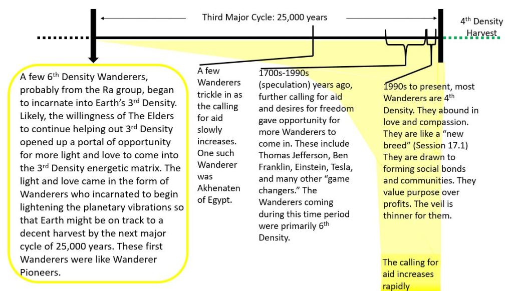 As one student of the material explains: “Wanderers primarily come from Ra, says the 6th density… having gone through 3rd and 4th and 5th having come from already an incredibly united organism of being, where a social memory complex… what maybe we can imagine as heaven, or something like that can be the experience of 6th density… 6th entity beings like 5th and 4th but very primarily 6th are like master gardeners that come and garden, the consciousness, the fertile field of the earth of consciousness.”¹⁴
