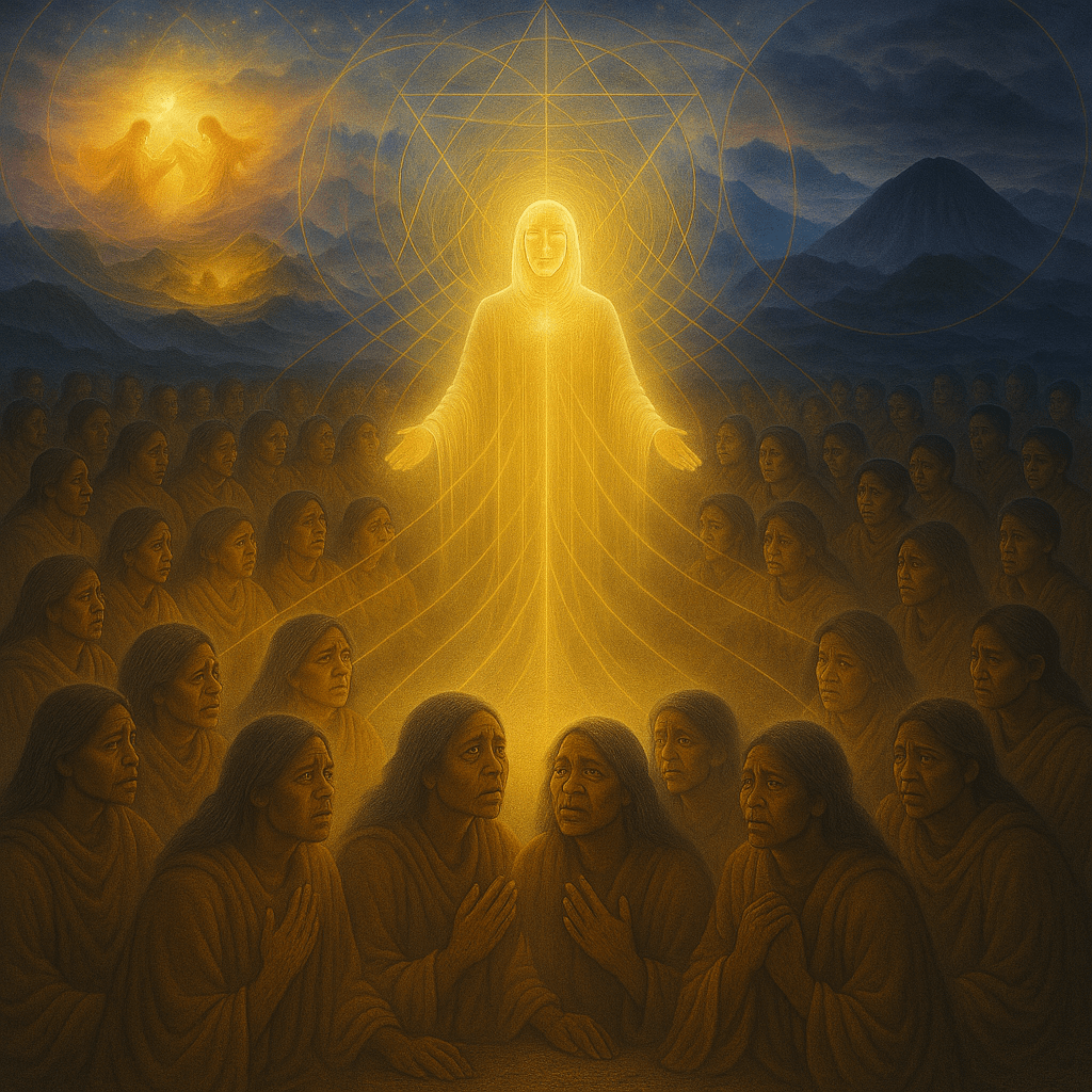 Picture, if you will, the moment 25,000 years ago when the Confederation’s light being appeared to the 150 harvestable souls in South America. These individuals had achieved near-perfect spiritual development, living lives of nearly 900 years in their isolated mountain communities. They had successfully learned the lessons of love and were ready to graduate to fourth density.