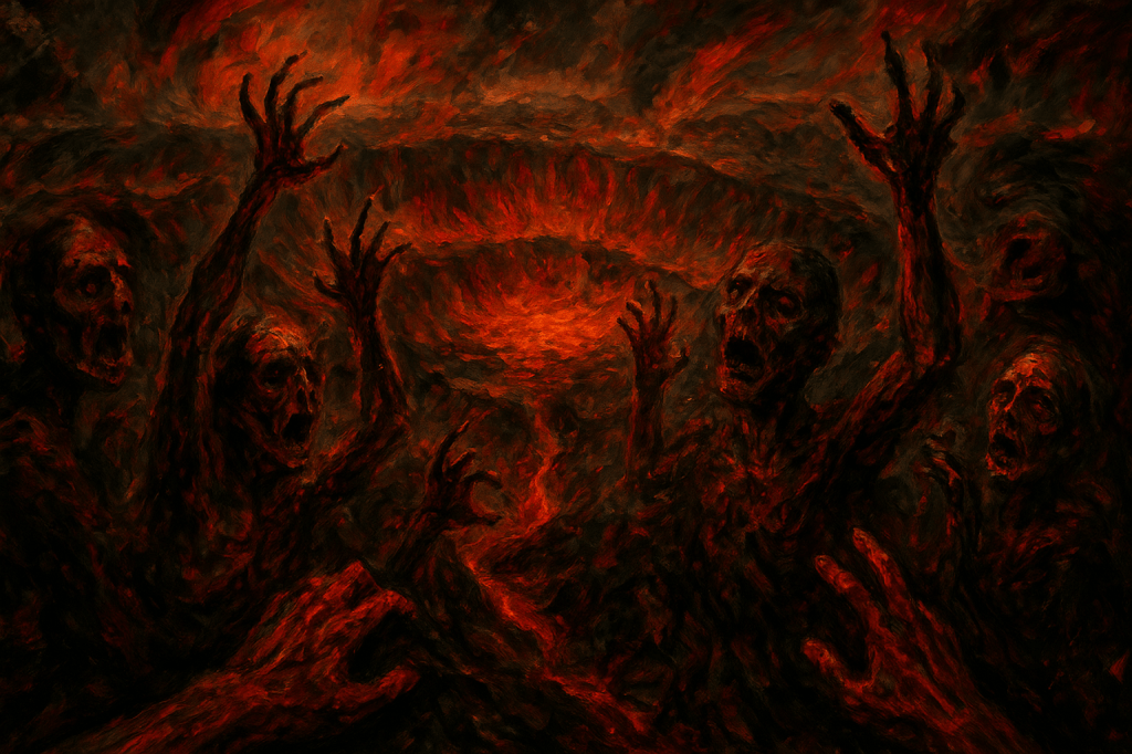 Visually, he saw twisted, malformed, grotesque beings—viscera, lower chakra colors, volcanic orange fire, and a blackness that wasn’t void but malice itself. He describes this as “dark light”—blackness inverted from void to malice rather than void to love.