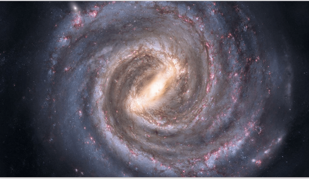 (Full-slide image: the spiral galaxy, its arms curling outward like a great celestial serpent)