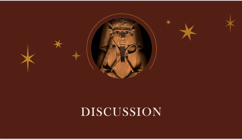 (Title slide: golden pharaonic bust holding the crook and flail, framed by celestial motifs — planets, stars, a crescent moon)